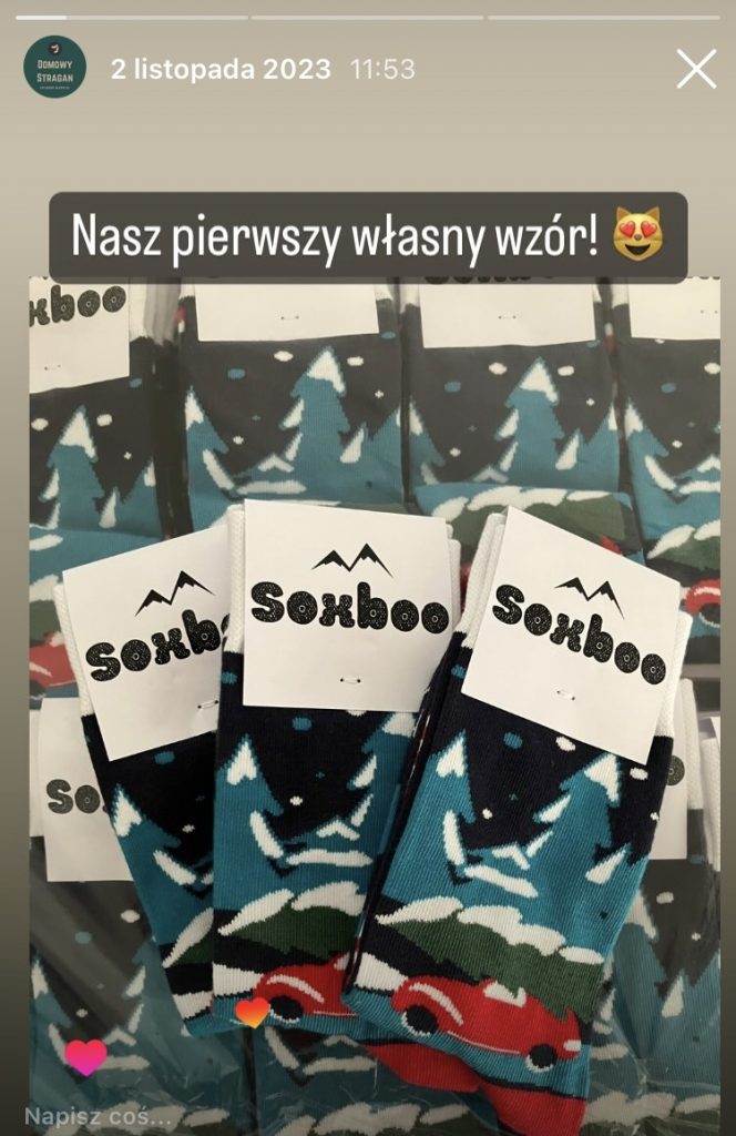 Ale oprócz tego, od 2023 roku tworzę i produkuję również własne wzory, pod marką Soxboo